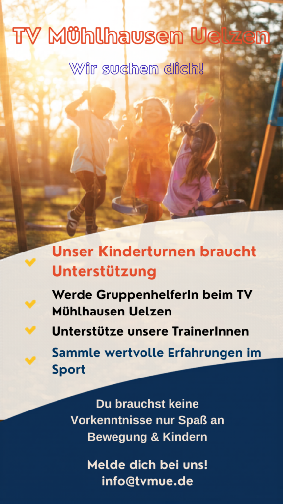 Der TV Mühlhausen Uelzen benötigt dringend engagierte Gruppenhelferinnen.